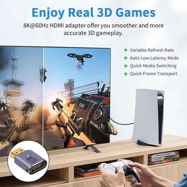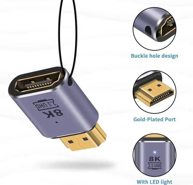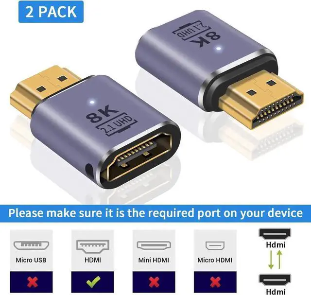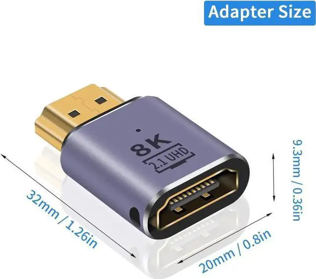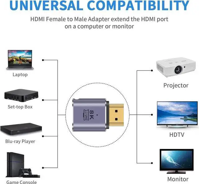 This HDMI 2.1 male-to-female extension adapter supports 48Gbps ultra-high-speed transmission, providing crystal-clear 8K@60Hz and smooth 4K@120Hz video with HDR and 3D effect. The compact design fits narrow spaces perfectly while extending your HDMI cable and preventing port wear. Gold-plated connectors guarantee stable, lossless signal for gaming, home theater and office scenarios. Plug-and-play with no drivers needed, compatible with most HDMI-equipped devices. Comes in a 2pack for multiple setups and backup use.