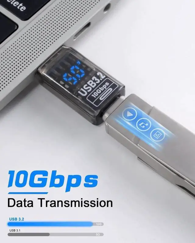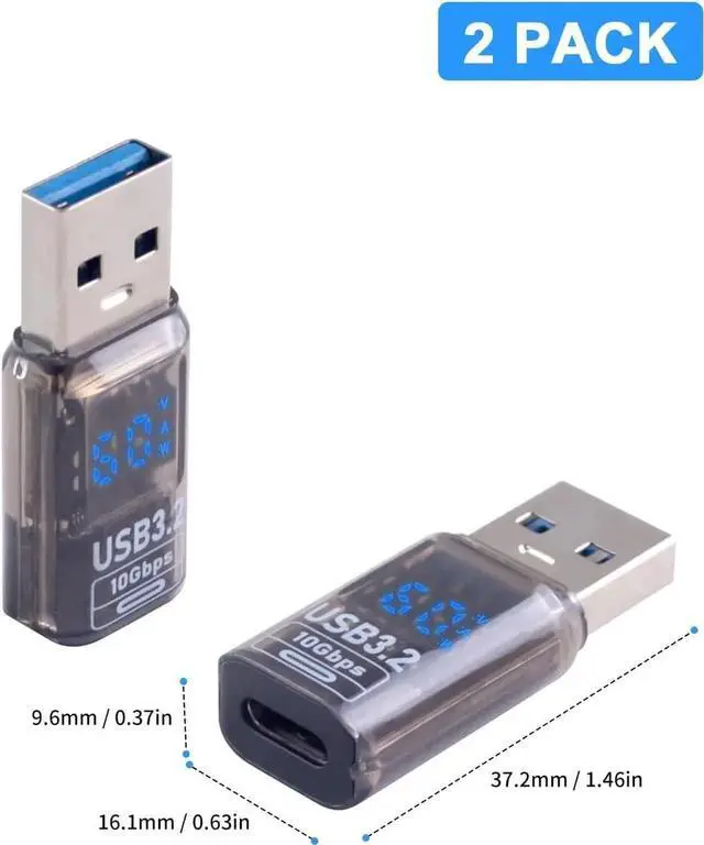 This transparent USB C female to USB male adapter supports 10Gbps SuperSpeed data transmission and efficient charging. It features a clear LED digital display that shows real-time voltage and current for safe power monitoring. The transparent shell is stylish and heat-resistant, perfect for daily use, office and gaming. Supports OTG function for wide compatibility with smartphones, laptops, tablets and external storage devices. No driver needed, just plug and use. Comes in a 2-pack for convenience and backup.