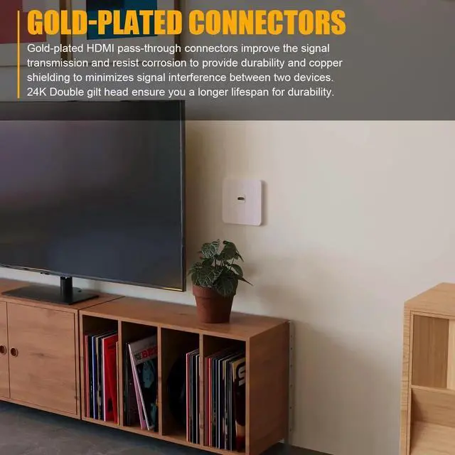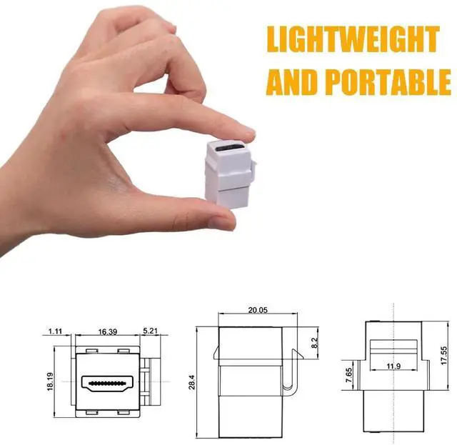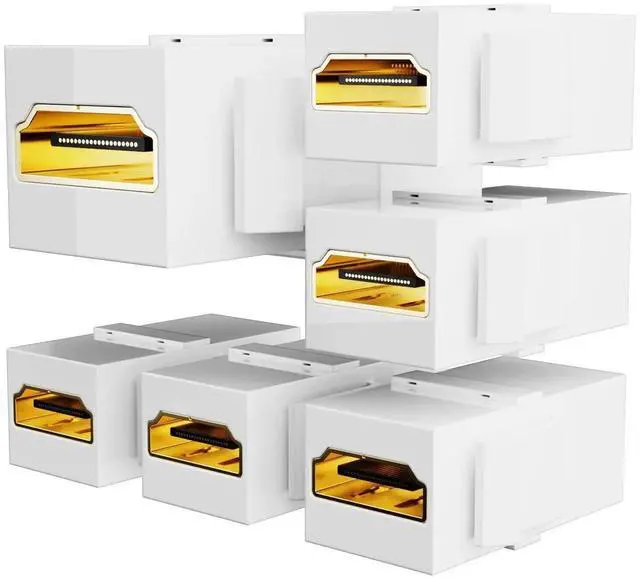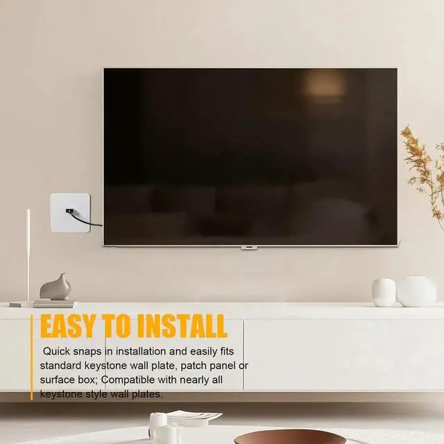 This gold-plated HDMI keystone jack provides a clean, professional way to extend HDMI cables through wall plates or patch panels. It supports full 4K resolution and 3D video with no signal loss. The female-to-female design lets you join two HDMI cables seamlessly. Snap-in installation fits standard keystone openings. Perfect for in-wall HDMI wiring in home theaters, offices, and commercial AV setups.
