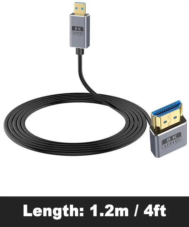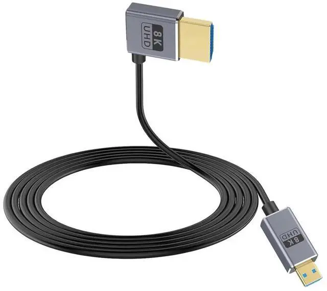 This high-speed Micro HDMI to HDMI 2.1 cable features a spacesaving downangle connector and supports 8K@60Hz / 4K@240Hz ultrahighdefinition video with 48Gbps bandwidth. Goldplated contacts ensure stable signal transmission for photography, live streaming, gaming and compact device setups.