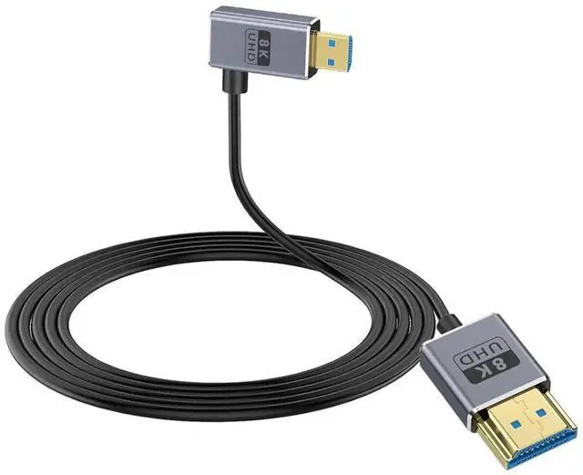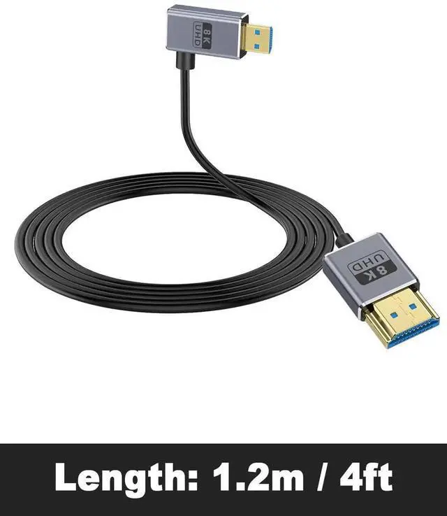 This left-angle 90° coiled micro HDMI to HDMI 2.1 cable supports 48Gbps ultra-high-speed transmission for sharp 8K@60Hz and 4K@240Hz video. The coiled structure keeps your gear tidy while the angled head fits tight camera rigs perfectly. Ideal for professional filming, live streaming and external monitor connection.