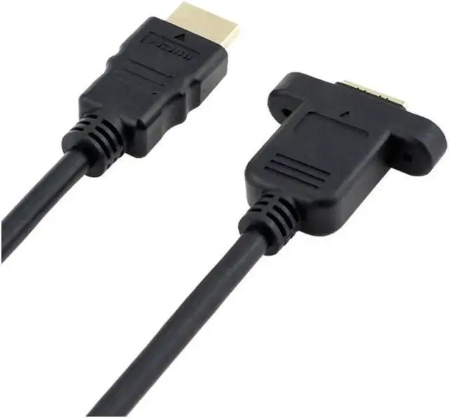 This 1-foot HDMI male-to-female extension cable is designed for panel mounting with a locking screw nut to keep connections firm. Gold-plated contacts ensure stable high-definition video and audio. Ideal for wall-mounted setups, control panels, and commercial display installations.