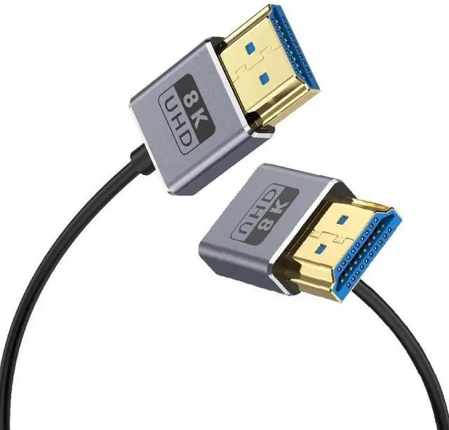 This 1ft ultra-slim HDMI 2.1 coaxial cable supports 48Gbps high-speed transmission for 8K@60Hz and 4K@240Hz with full Dynamic HDR and eARC. Its down-angle connector fits tight spaces like camera setups and TV rear panels, while the 2.5mm thin body ensures great flexibility. Ideal for professional filmmaking, next-gen gaming, and home theater systems.