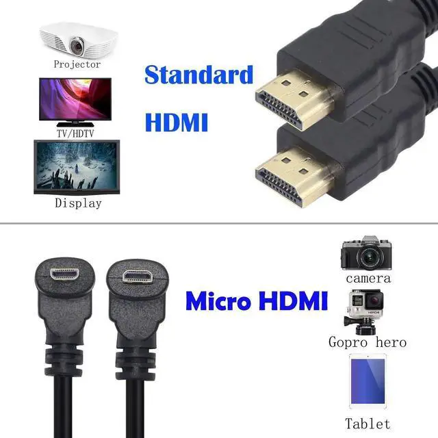 This 2-pack micro HDMI to HDMI angle cable set comes with 90° up and down connectors to fit narrow spaces behind TVs, cameras and monitors. It delivers full 4K, 3D and ARC audio support with stable high-definition transmission. Ideal for DSLRs, drones, tablets and portable display setups.
