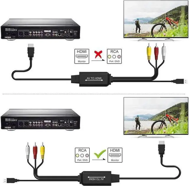 This RCA to HDMI converter easily converts analog AV composite (3 RCA) signal to 1080P HDMI digital signal, allowing you to connect vintage devices like VHS, VCR, DVD players and old camcorders to modern HDMI TVs and monitors. Supporting both PAL and NTSC systems, it delivers stable, high-definition video output with plug-and-play simplicity. Ideal for restoring old videos, family tapes and retro device usage.