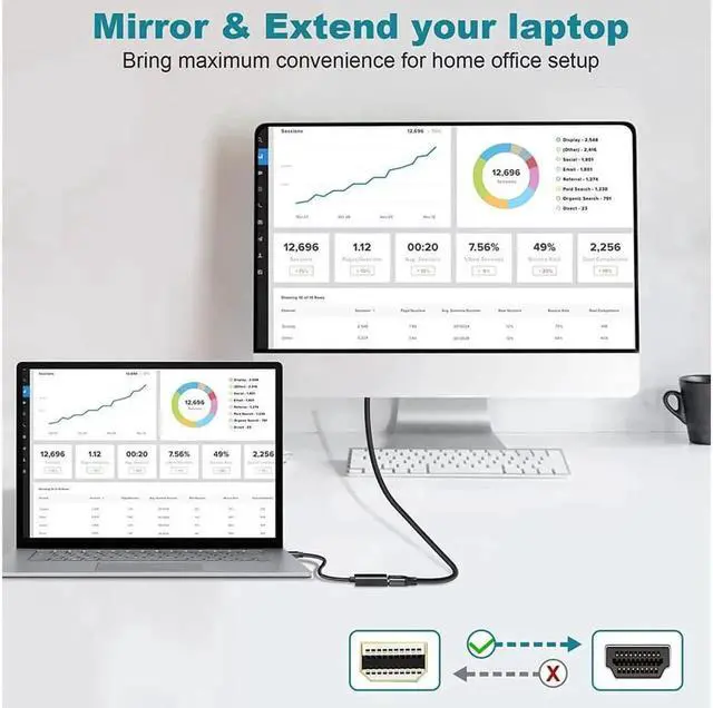 This Pasow Mini DisplayPort to HDMI adapter converts Mini DP / Thunderbolt signal to HDMI, supporting up to 4K UHD video output. It provides stable audio and video transmission with no lag or flicker. The compact black design is perfect for connecting MacBook, laptop or other Mini DP devices to HDTV, monitor or projector for work, entertainment and presentations.