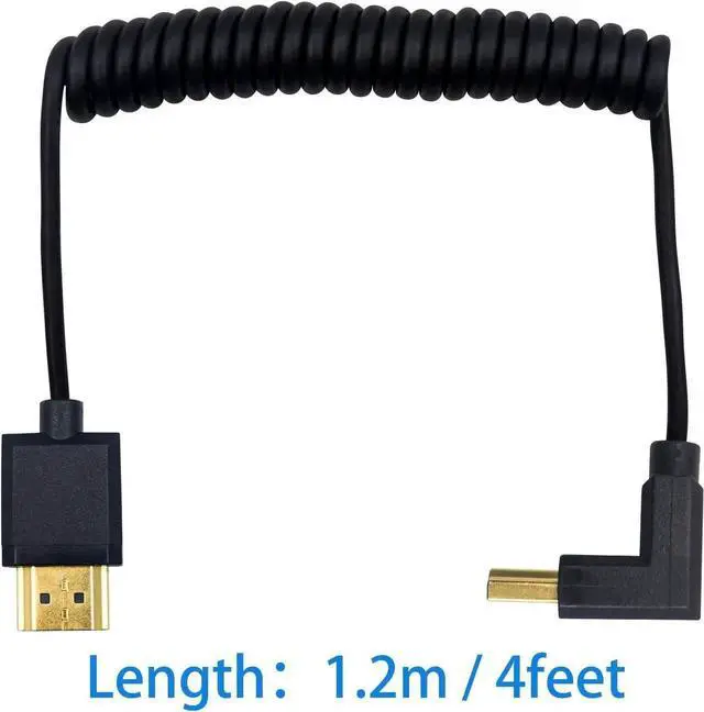 This 4FT/1.2M down-angle coiled HDMI cable uses an ultra-slim, flexible design with a 90° downward connector for clean, spaceefficient installation. It provides stable 4K@60Hz and 3D video performance for streaming, gaming, and home theater. Perfect for TV sticks, game consoles, Blu-ray players, and wallmounted TV setups.
