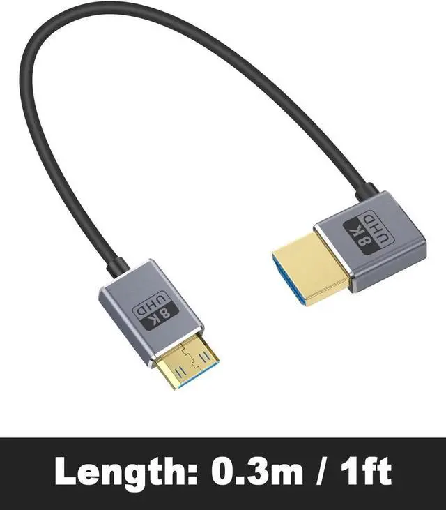 ![Alt view image 5 of 7 - 8K Coaxial Left Angle HDMI to Mini HDMI Cable 1FT/30cm, [48Gbps, 8K@60Hz, 4K@240Hz], Ultra Thin Mini HDMI 2.1 Male Cable for Camera, Camcorder, Tablet, Laptop, Raspberry Pi Zero](https://c1.neweggimages.com/productimage/nb640/C472S2604220CJMS671.jpg)