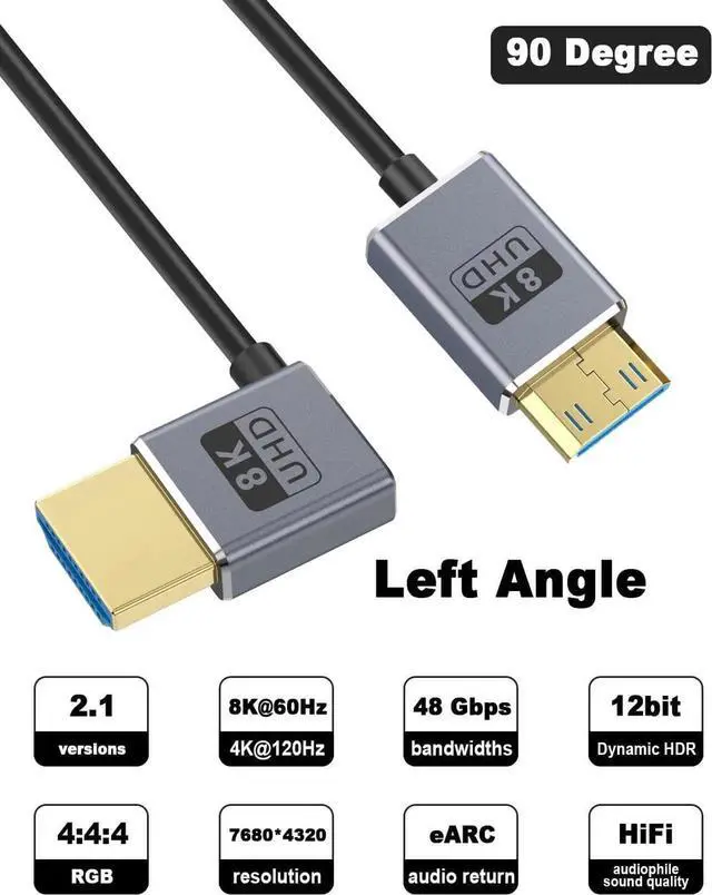 ![Alt view image 6 of 7 - 8K Coaxial Left Angle HDMI to Mini HDMI Cable 1FT/30cm, [48Gbps, 8K@60Hz, 4K@240Hz], Ultra Thin Mini HDMI 2.1 Male Cable for Camera, Camcorder, Tablet, Laptop, Raspberry Pi Zero](https://c1.neweggimages.com/productimage/nb640/C472S2604220CJMV0A4.jpg)