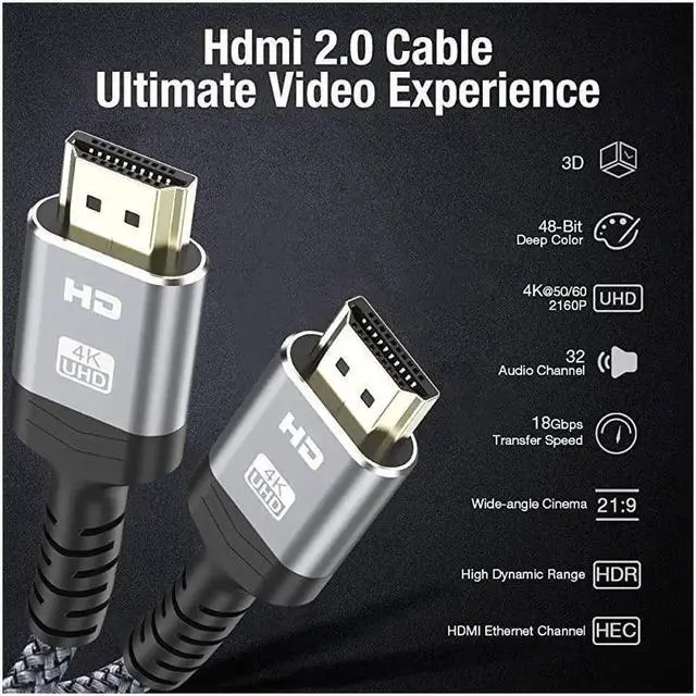This 1.5FT high-speed HDMI 2.0 braided cable supports 18Gbps bandwidth and 4K@60Hz HDR for clear, smooth video. It supports ARC, 3D, HDCP 2.2 and Ethernet for home theater and gaming. The short, sturdy design is ideal for tight spaces and clean connections with TVs, monitors, game consoles and projectors.