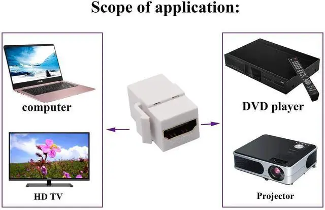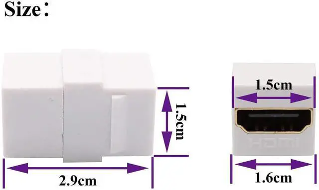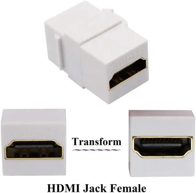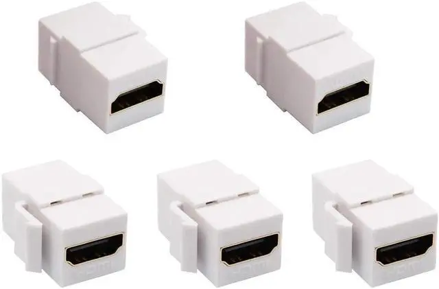 This 5-pack white HDMI keystone coupler provides a neat and professional solution for extending HDMI signals through wall plates. With gold-plated connectors, it supports 4K, 3D and high-definition audio/video without signal loss. Perfect for home theater, conference rooms and structured cabling systems.