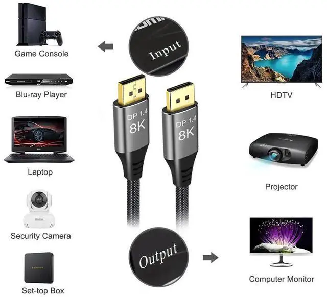 This 10ft DisplayPort 1.4 cable supports ultra-high-bandwidth transmission up to 32.4Gbps, enabling crisp 8K@60Hz UHD and smooth 4K@144Hz gaming. With HBR3 technology and durable braided construction, it ensures stable, low-loss signal. Backward compatible with DP 1.2, it works seamlessly with all DP-enabled devices for gaming, media, and professional multi-display use.
