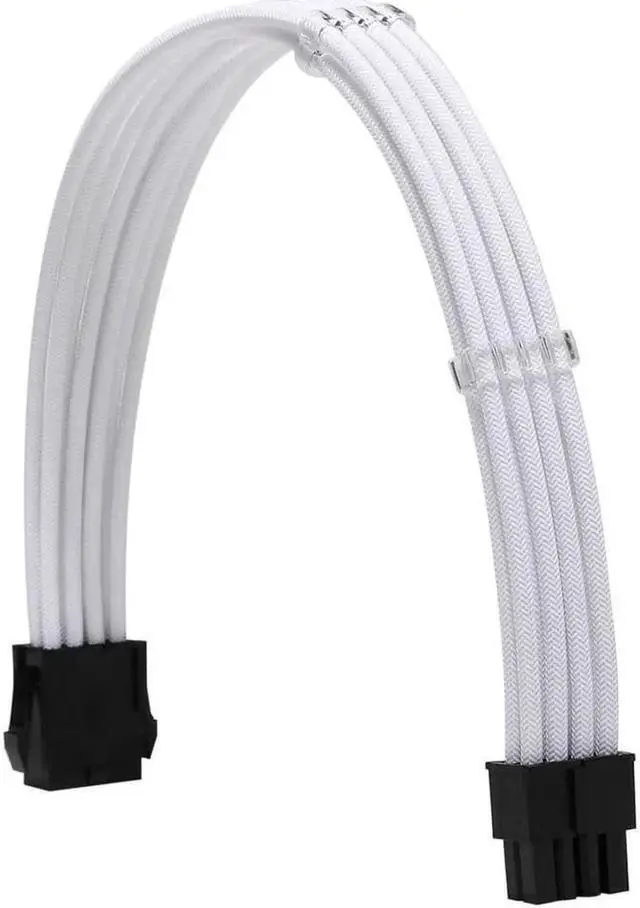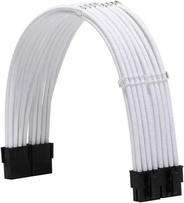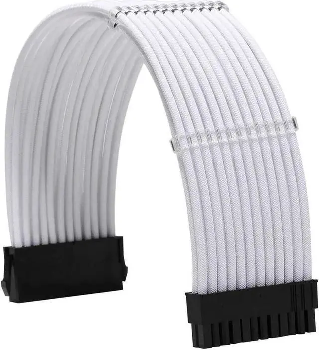 This white sleeved PSU extension kit includes ATX 24-pin, EPS 8-pin, and PCI-E 8-pin cables made with high-quality 18AWG wire for stable and safe power transmission. The soft sleeved appearance greatly improves the look of your PC case, while the included cable combs help organize cables neatly. It is widely compatible with standard power supplies, motherboards and graphics cards, perfect for PC building and modding.