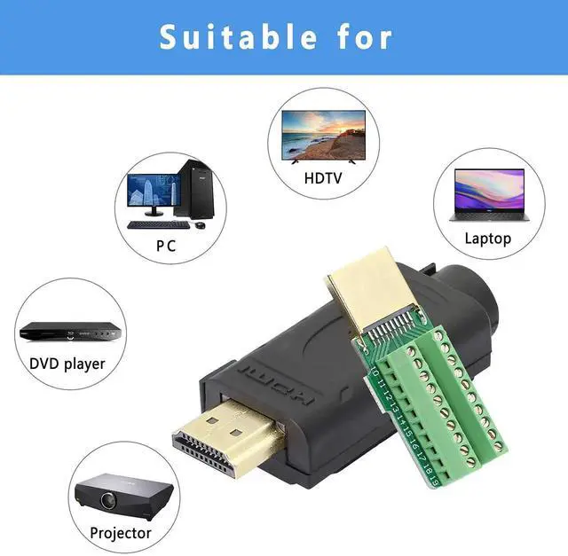 This HDMI solderless breakout terminal provides a solder-free solution for custom HDMI cable making, repairing, and extending. Gold-plated contact points guarantee reliable signal transfer while reducing interference. The set includes a protective plastic cover and screwdriver for tool-free, quick assembly. Ideal for electronic DIY, engineering wiring, and on-site cable modification without professional welding equipment.
