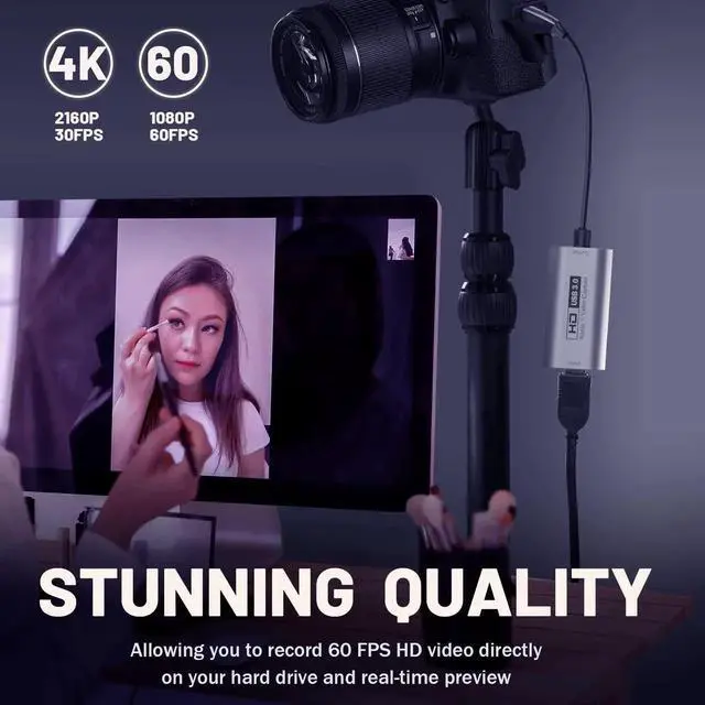 This gray HDMI to USBC capture card uses USB 3.0 for stable, highdefinition capture at 2K@30fps and 1080P@60fps. It works seamlessly with Mac, Windows, iPad, OBS, Zoom and supports game consoles, VR headsets and cameras. Perfect for live streaming, game recording, video calls and content creation with plugandplay convenience.