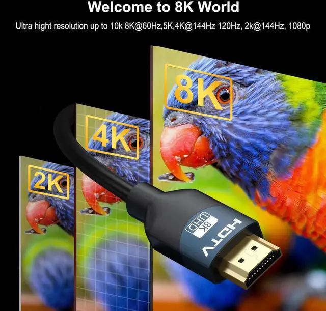 This 5-pack 3-foot HDMI 2.1 cable supports 48Gbps ultra-high-speed transmission for 8K@60Hz and 4K up to 240Hz high-refresh display. Features ARC/eARC, HDR10, 3D and HDCP2.3 to deliver immersive video and audio for gaming, movies and streaming. Durable, flexible and plug-and-play, perfect for next-gen consoles, gaming monitors, home theater and multi-device setups.
