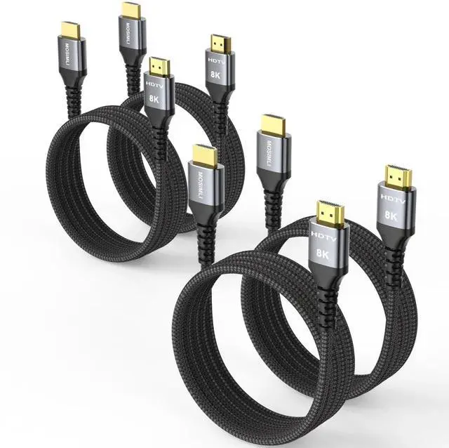 This 4-pack 6-foot HDMI 2.1 cable provides 48Gbps ultra-high-speed transmission for 8K@60Hz and 4K@120Hz high-refresh display. It supports eARC, Dolby Atmos, DTS:X, HDR10+, 12bit color and HDCP 2.3 to deliver professional video and audio performance. Stable and durable, ideal for next-gen gaming, streaming, home cinema and multi-device connections.