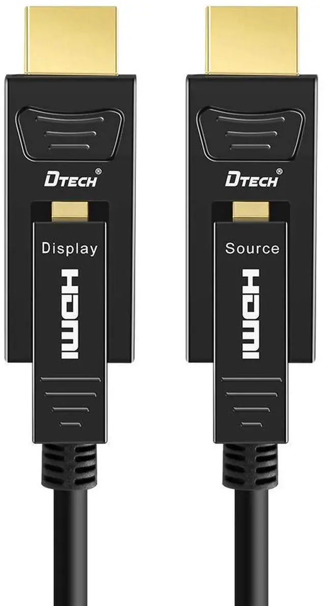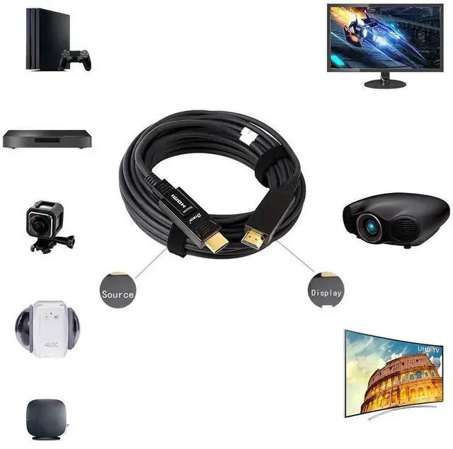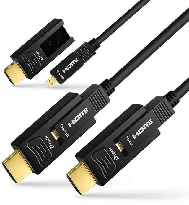 This 50-foot fiber optic HDMI cable supports 4K@60Hz resolution with 4:4:4 chroma subsampling, delivering pristine, detailed picture quality with full color accuracy. Built with fiber optic core, it ensures stable, interference-free signal transmission over long distances with no quality loss. The 18Gbps high-speed bandwidth supports smooth Ultra HD streaming and gaming. Featuring a standard HDMI to Micro HDMI dual connector design, it is widely compatible with TVs, projectors, computers, monitors, DSLR cameras and other HDMI/Micro HDMI-enabled devices. Perfect for home theaters, in-wall installations, presentations and professional AV setups.