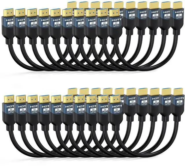 This 1-foot 20-pack HDMI 2.1 cable provides stable 48Gbps high-speed transmission for sharp, high-frame-rate video and premium audio. It supports 8K@60Hz, 4K@144Hz and 1080P@240Hz, ideal for competitive gaming, high-refresh monitors and home theater systems. Features ARC/eARC for enhanced audio, HDR and 3D for stunning visuals, and HDCP 2.2 for copy-protected content. The compact 1FT length keeps your space tidy and organized. Wide compatibility with PS5, PS4, Xbox, Roku, soundbars, TVs, computers, monitors and all HDMI-enabled devices.