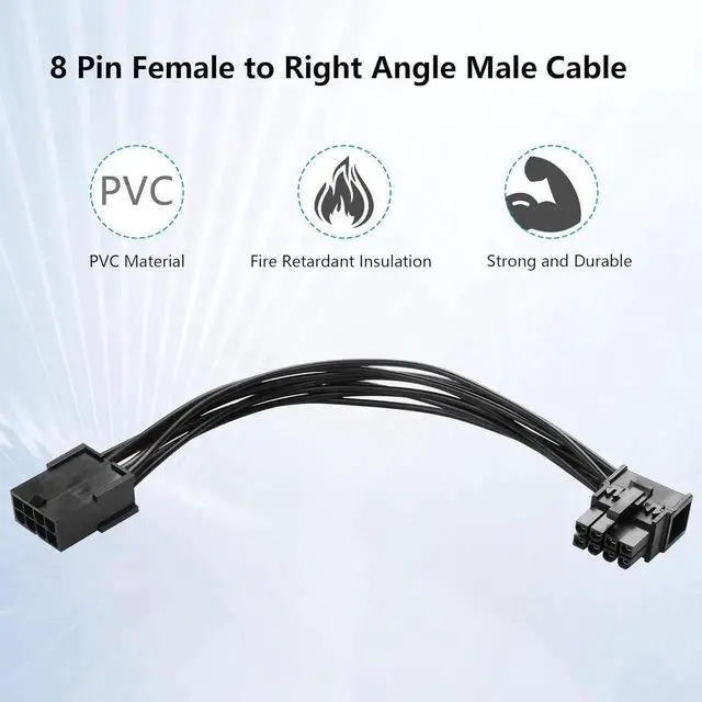 This PCIE 8-pin power extension cable features a female input to left-direction right-angle male connector, designed specifically for graphics cards in compact PC cases. Built with 18AWG high-purity copper wire, it ensures stable and safe power transmission to your GPU. The 15cm short length reduces clutter and improves airflow, while the 90° angled design prevents cable kinking and damage. Ideal for modding, small form factor builds, and situations where straight connectors cannot fit.