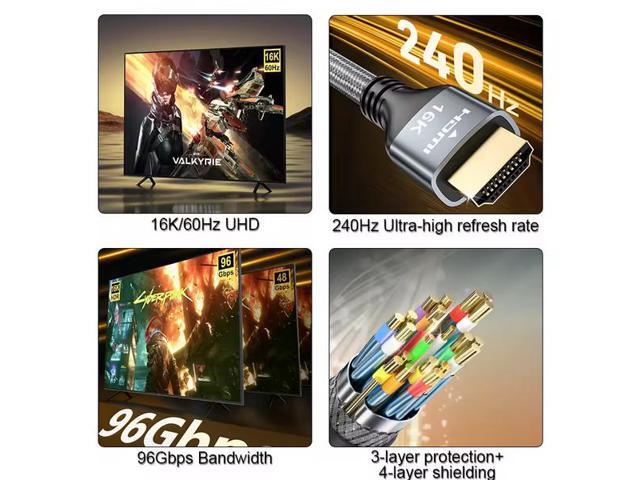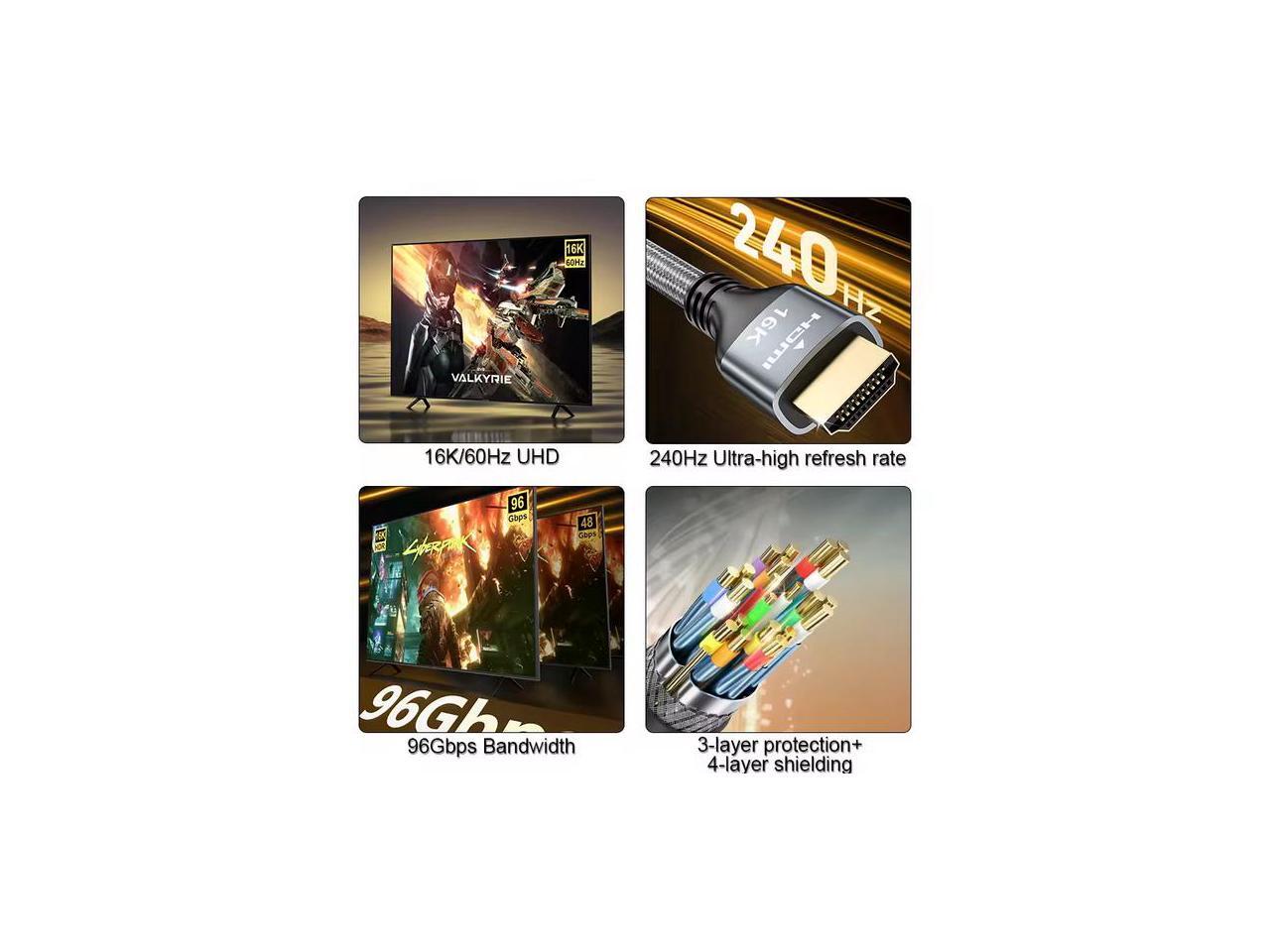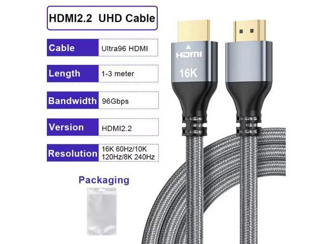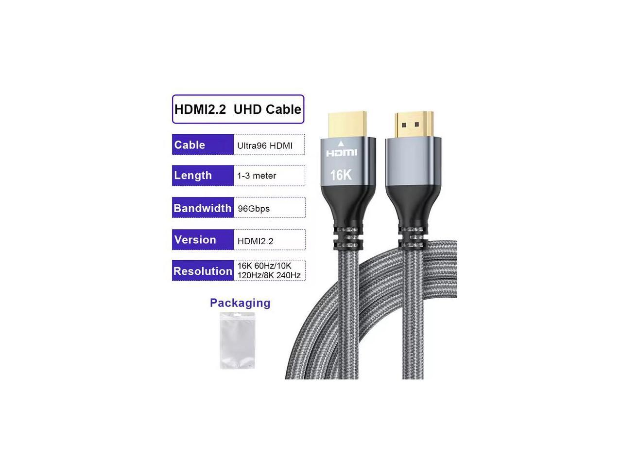 Ultra96 HDMI 2.2 Cable - 16K@240Hz Ultra HD, 48Gbps Bandwidth, Gold-Plated Connectors, Braided Jacket for Next-Gen Projector, Monitor & Display 2M