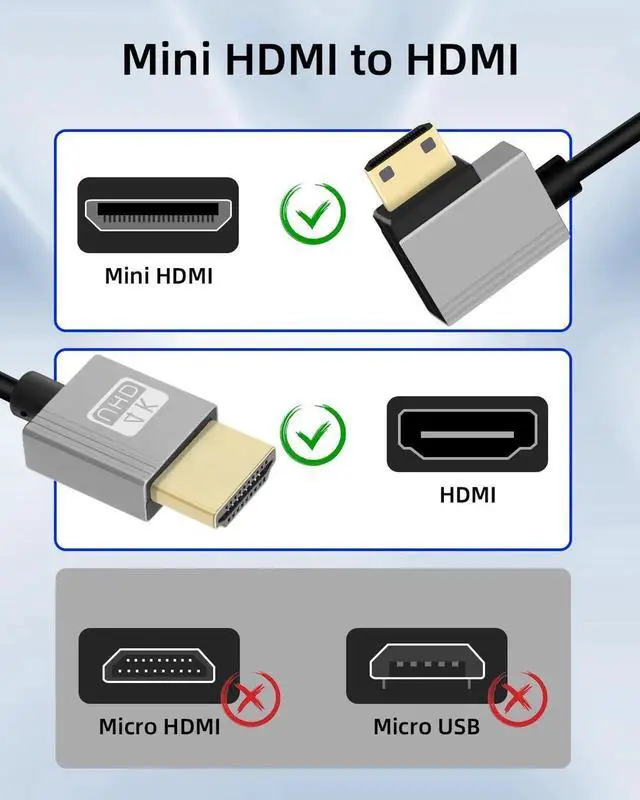 5.Compatible with a wide range of devices, including DSLR cameras, mirrorless cameras, camcorders, and other Mini HDMI-equipped gadgets, this mini HDMI cord is perfect for both personal and professional use. And with its plug-and-play simplicity, you can start using it right away without any need for additional drivers or software.