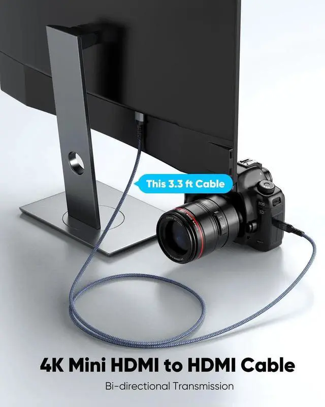 ![Alt view image 3 of 7 - Mini HDMI to HDMI Cable 3.3FT, (4K 60Hz) High Speed HDMI to Mini HDMI Male Bi-Directional 2.0 Cord, for HDTV, Tablet, Camera and Camcorder [Aluminum Shell, Nylon Braided]](https://c1.neweggimages.com/productimage/nb640/C2AGS25122605880F07.jpg)