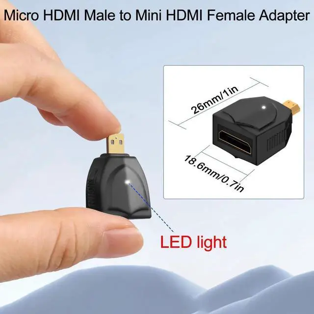 • [Dual Sided LED Light]8K Micro HDMI male to Mini HDMI female HD gold-plated adapter with dual sided LED indicators that light up when working.