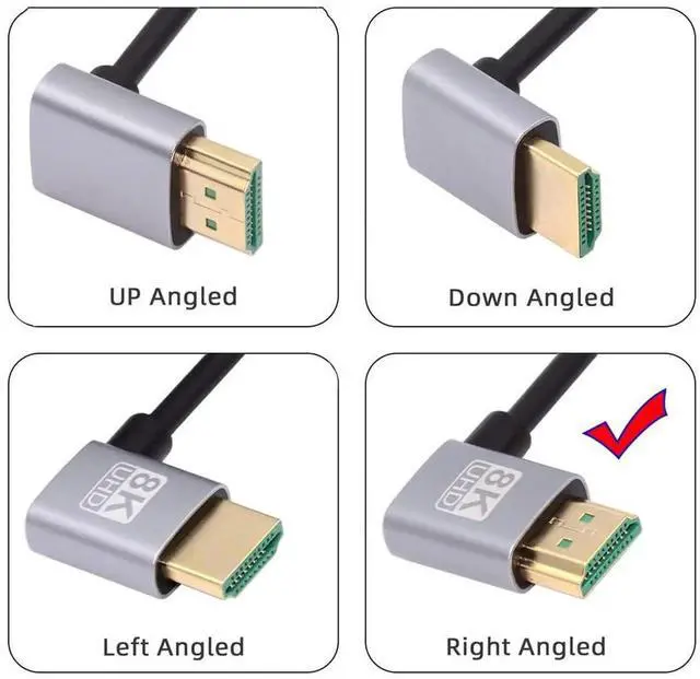 HDMI 2.1 Ultra Thin HDTV Cable 8K 4K Hyper Super Flexible Slim Cord Type-A Male to Male Angled 90 Degree for Computer HDTV