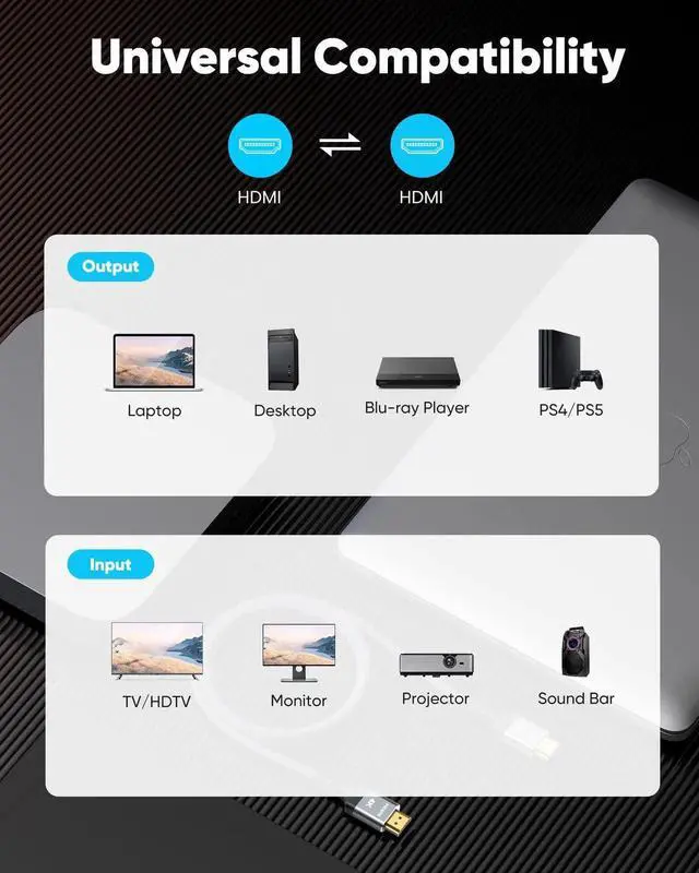 Newest Technology: HDMI 2.0 Cable meets the latest standard HDMI 2.0 Version,which has been tested and certified,Designed perfectly for all devices with HDMI 2.0 standard as well as being backwards compatible with previous HDMI 1.4 , 1.3 & 1.2
