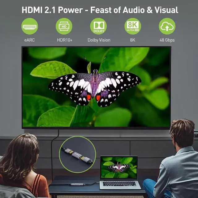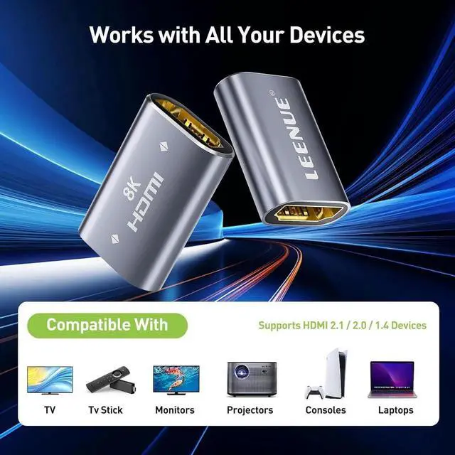 COMPATIBILITY: The HDMI 2.1 adapter works with any HDMI-equipped devices including TVs monitors projectors PS5 Xbox laptops and streaming sticks. Backward compatible with HDMI 2.0 / 1.4 standards meeting your various visual needs