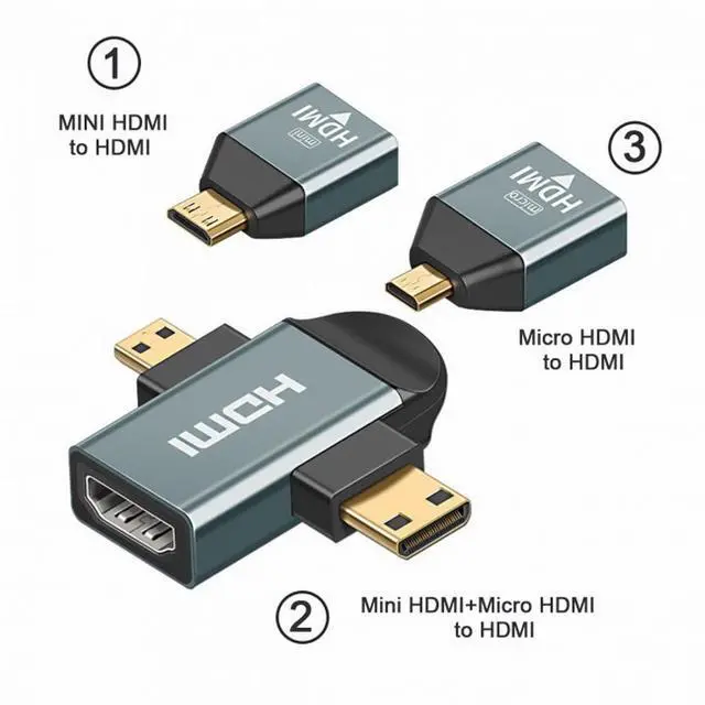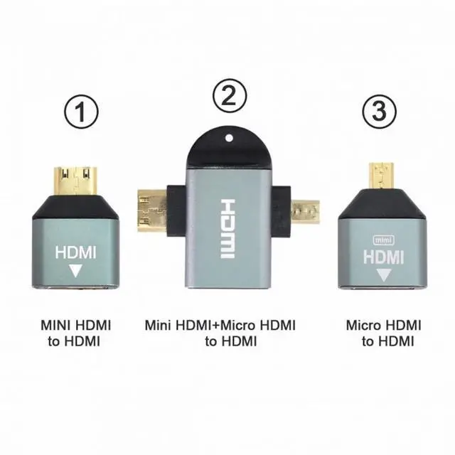 3pcs/set Micro Mini HDMI to HDMI-compatible 1.4 Female 2-in-1 Combo Adapter 4K@60hz