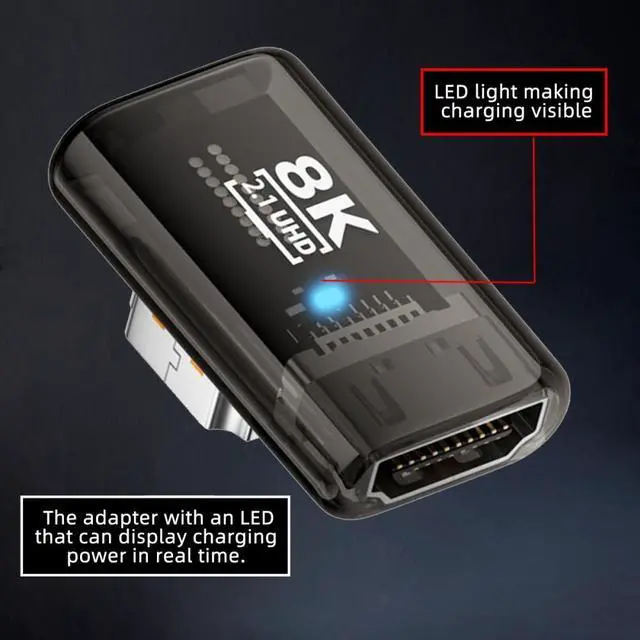 Angled 90 Degree HDMI Male to HDMI 2.1 Female UHD Extension Adapter Extender Transparent with Smart LED 8K 60hz HDTV