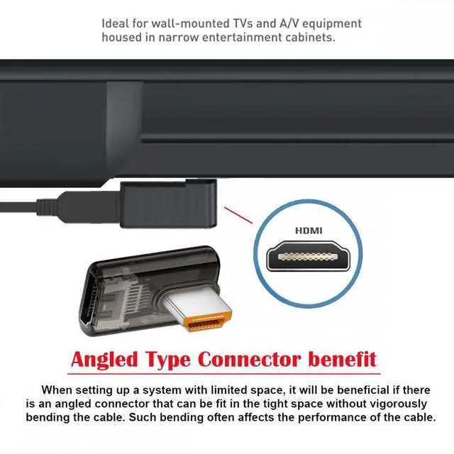 This Angled type Allowing you to connect the cable to a female port, even if space around the port is limited.No more need to twist your cables, so now you have a straight connection to your cable and better quality signal to your device.