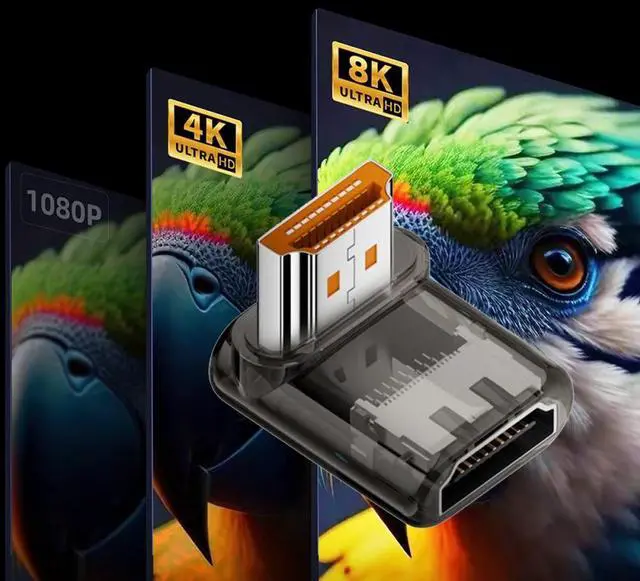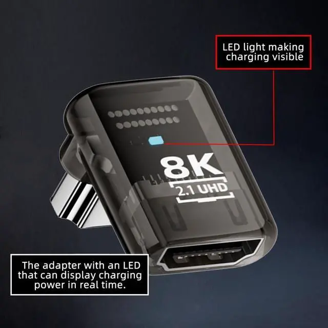 Angled 90 Degree HDMI Male to HDMI 2.1 Female UHD Extension Adapter Extender Transparent with Smart LED 8K 60hz HDTV