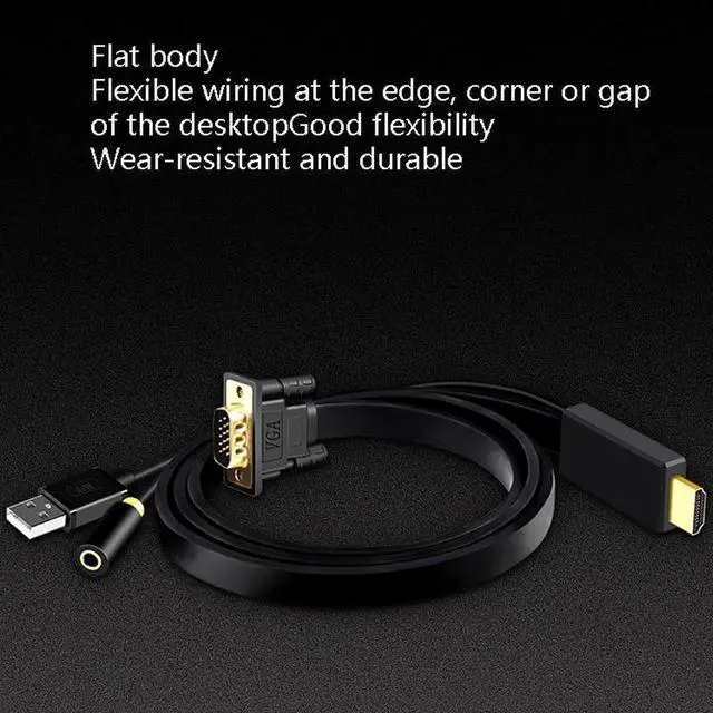 7. Features: flat cable body, flexible wiring at the edge of the desktop, corners or gaps, good flexibility, wear-resistant and durable, the interface is gold-plated, plug-in resistance, anti-oxidation, 3.5 mm independent audio interface, audio and video synchronization enjoyment, USB The power supply interface is connected to the computer USB port or USB charging device, the transmission is more stable, the powerful chip, the performance is stable
