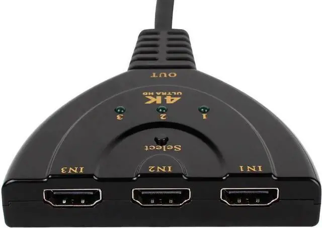 3 Port 1080P HDMI AUTO Switch Splitter Switcher HUB for PS4 Cable Xbox ONE 4K Bullet Point This 3 input to 1 output HDMI switcher has the key-press-switching function and has the inteligent function. The 3 input to 1 output HDMI switcher routes high definition 4k*2k video and digital audio from any one of the 3 sources to display unit. Three inputs accommodate the simultaneous connection of high definition video sources, such as HD player, Blu-ray player, Set Top Box, P&S3, P&S4, Xbox360 etc. The output sends the high definition audio/video signals to a high definition display like HDTV.