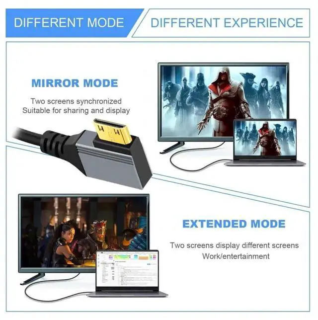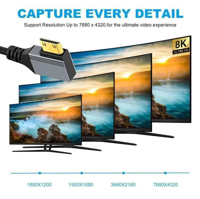 Angled Connector Design: 90 Degree Left Angled Mini HDMI, The angled type Allowing you to connect it to a female port, even if space around the port is limited.