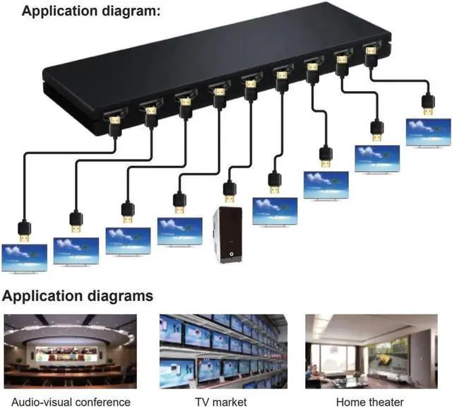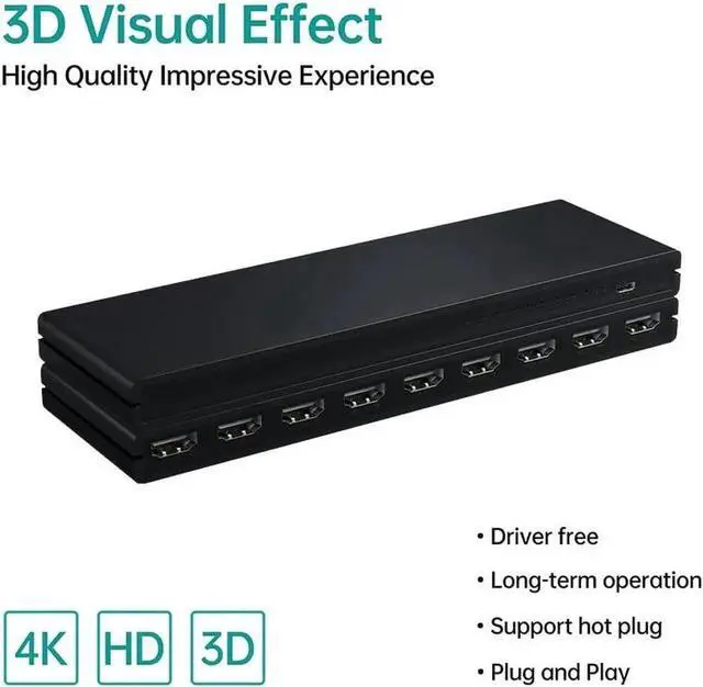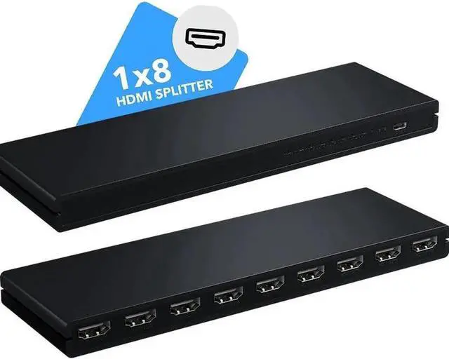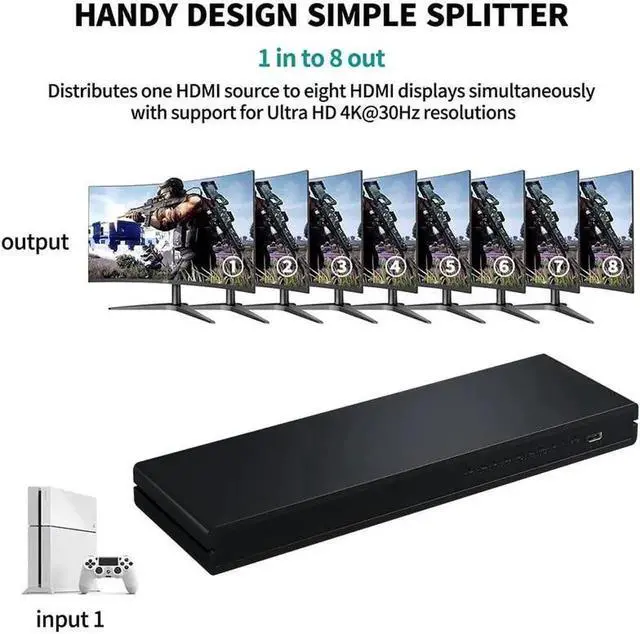 1x8 HDMI Splitter 1 in 8 Out HDMI Splitter Audio Video Distributor Box Support Full HD 3D 4K 30Hz for Projector HDTV STB DVD PS3 (USB Power Cable)