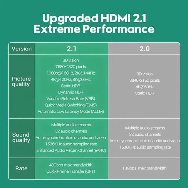 ![Alt view image 6 of 6 - [3.3FT 2-Pack] 8K HDMI 2.1 Cable, 48Gbps Certified High Speed HDMI Cord (8K@60Hz, 4K@120Hz) HDCP 2.2&2.3, DTS:X, eARC,HDR10, Dynamic HDR, Compatible with Laptop Monitor UHD TV PS5 PS4 Dolby -Green](https://c1.neweggimages.com/productimage/nb640/C1DRS25101008N5SAC7.jpg)