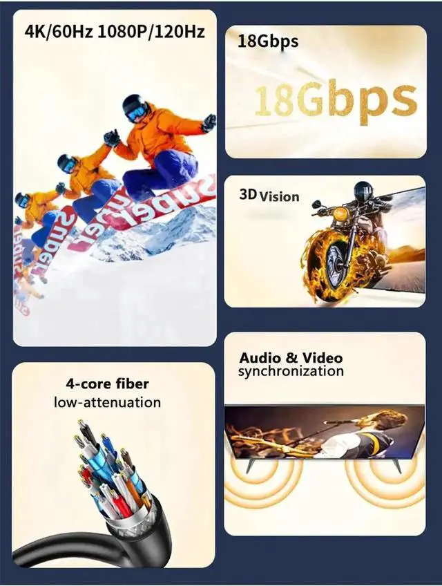High Speed 18Gbps: This HDMI Fiber Optic Cable is made of high quality glass fiber for pure signal transmission. Can ensure the full 18Gbps signal transmission without signal loss.