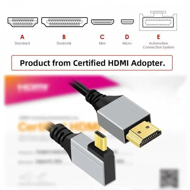 Angled Connector Design: 90 Degree Angled HDMI, The angled type Allowing you to connect it to a female port, even if space around the port is limited.