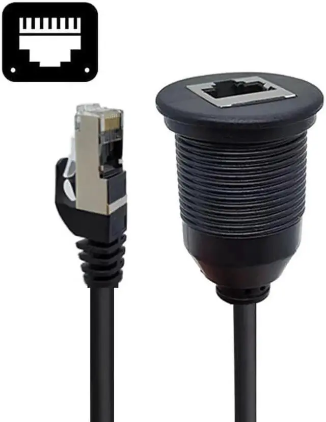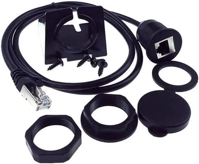 • 1m Waterproof Dustproof Locking CAT6 RJ45 Male to Female Lan Ethernet Network Extension Cable Car Panel Mount Design