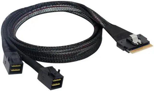 • PCI-E Ultraport Slimline SAS Slim 4.0 SFF-8654 8i 74pin to Dual SFF-8643 4i Mini SAS HD Cable PCI-Express