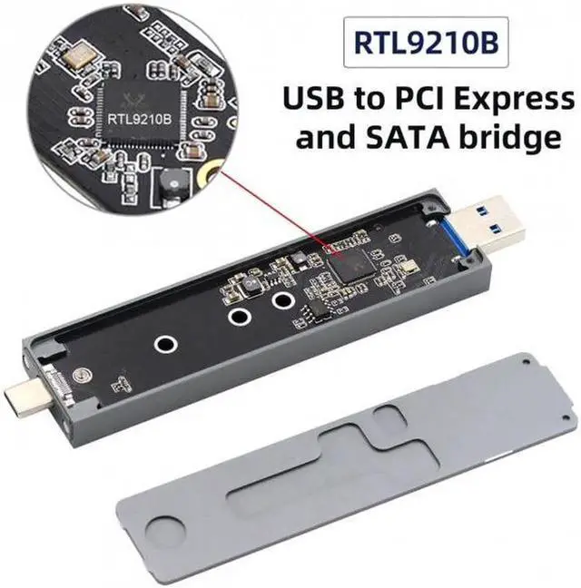 The RTL9210B chipset is a USB bridge that combines a USB device with both a PCIe controller and a SATA controller. Via the PEDET interface of M.2 mechanical, it can auto switch USB-to-PCIe mode, or USB-to-SATA mode.