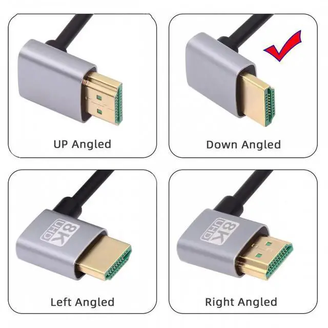 1. HDMI 2.1 Ultra Thin HDTV Cable 8K 4K Hyper Super Flexible Slim Cord Angled 90 Degree Type-A Male to Male for Computer HDTV