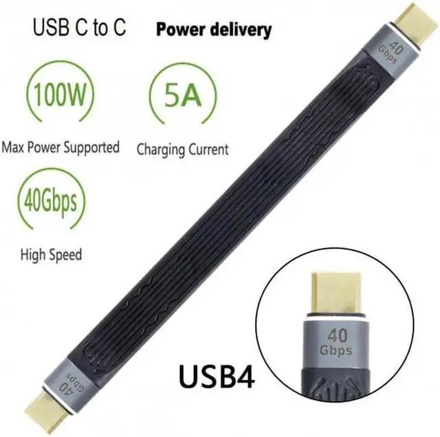 • Type-C USB-C Male to Male USB4 40Gbps 100W 8K Flat Slim FPC Data Cable for Laptop Phone 13cm