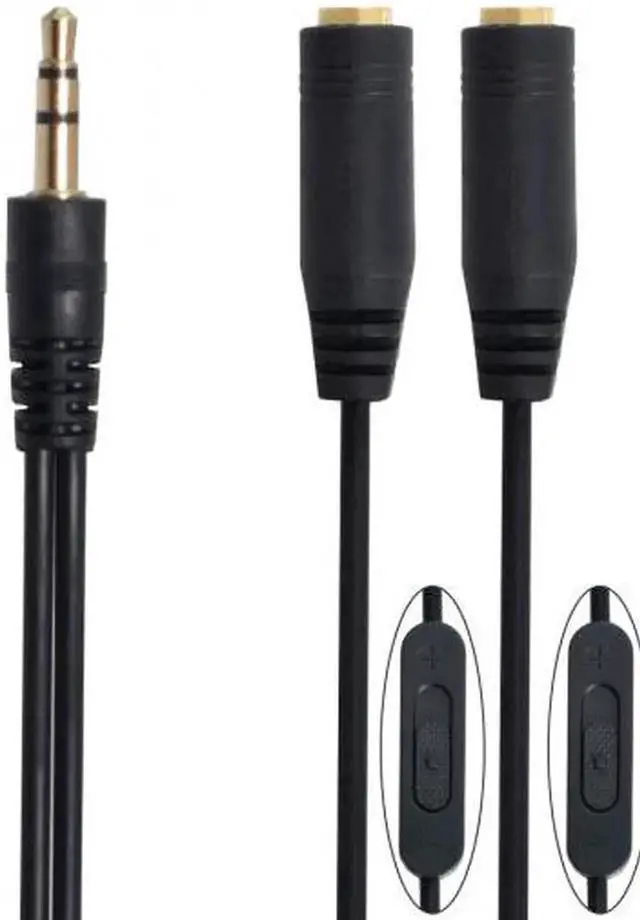 • 3.5mm Stereo Audio 1 Male to 2 Female Splitter Adapter With Volume Switch