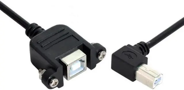 1. 90 Degree Right Angled USB B Type Male to Female extension cable with screws for Panel Mount 50cm