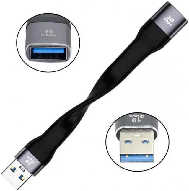 • 10Gbps USB 3.1 Type A Female to USB3.0 Type A Male Extension Flat Slim FPC Data Cable 13cm for Laptop Desktop